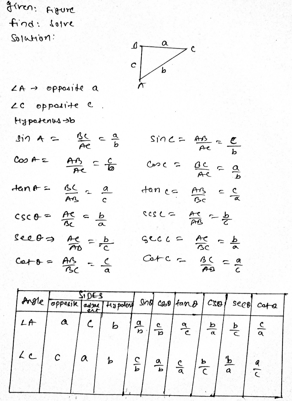 Every right triangle contains two angles. The sine and cosine rules calculate lengths and angles in any triangle. From each acute angle, you can label the sides as the hypotenuse, opposite, and adjacent. Jun 12, 2021 · knowing how to approach each of these situations enables us to solve oblique triangles without having to drop a perpendicular to form two right triangles. Also, we will generally use capital letters for and lowercase letters for hypotenuse hypotenuse adjacent adjacen adjacent